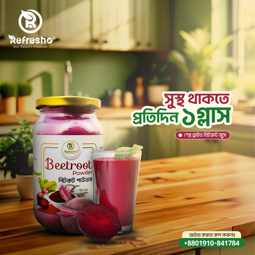 প্রতিদিন ১ গ্লাস Refresho বিটরুট জুস—শরীরে জোগায় শক্তি, বাড়ায় হিমোগ্লোবিন, রাখে হৃদয়কে সুস্থ।